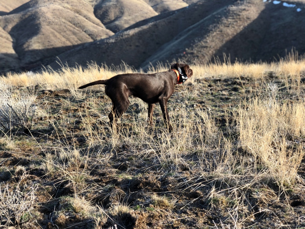 Here’s three pictures of a proud young dog that has figured out how to find chukars in some good looking country.