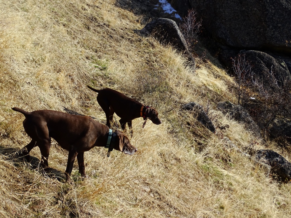 Fine by me. He also will never give up chukar hunting. And of course there is Grady who always provides much entertainment. He is at home on the steep mountain slopes.