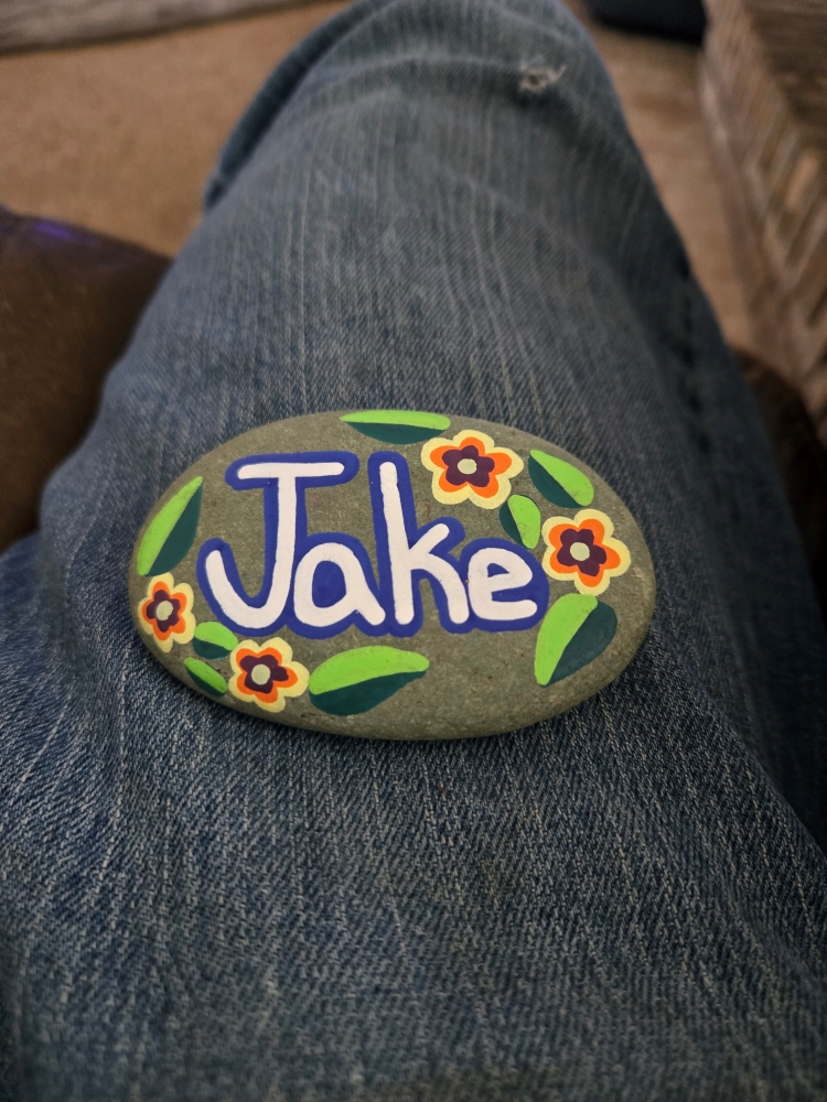 Today, I got a reminder of my great dog that passed 6 months ago. I got this rock in the mail with Jake’s name on it and a note about him. I didn’t realize that the vet supply company (Chewy) that we had been getting Jake’s diabetic medicine from had contacted Barb as to why she stopped ordering his medicine. Their reply was so heartfelt and genuine. I thought I had quit crying over his loss, but once again, the tears started falling for Jake. He and the previous three were such great dogs and companions.